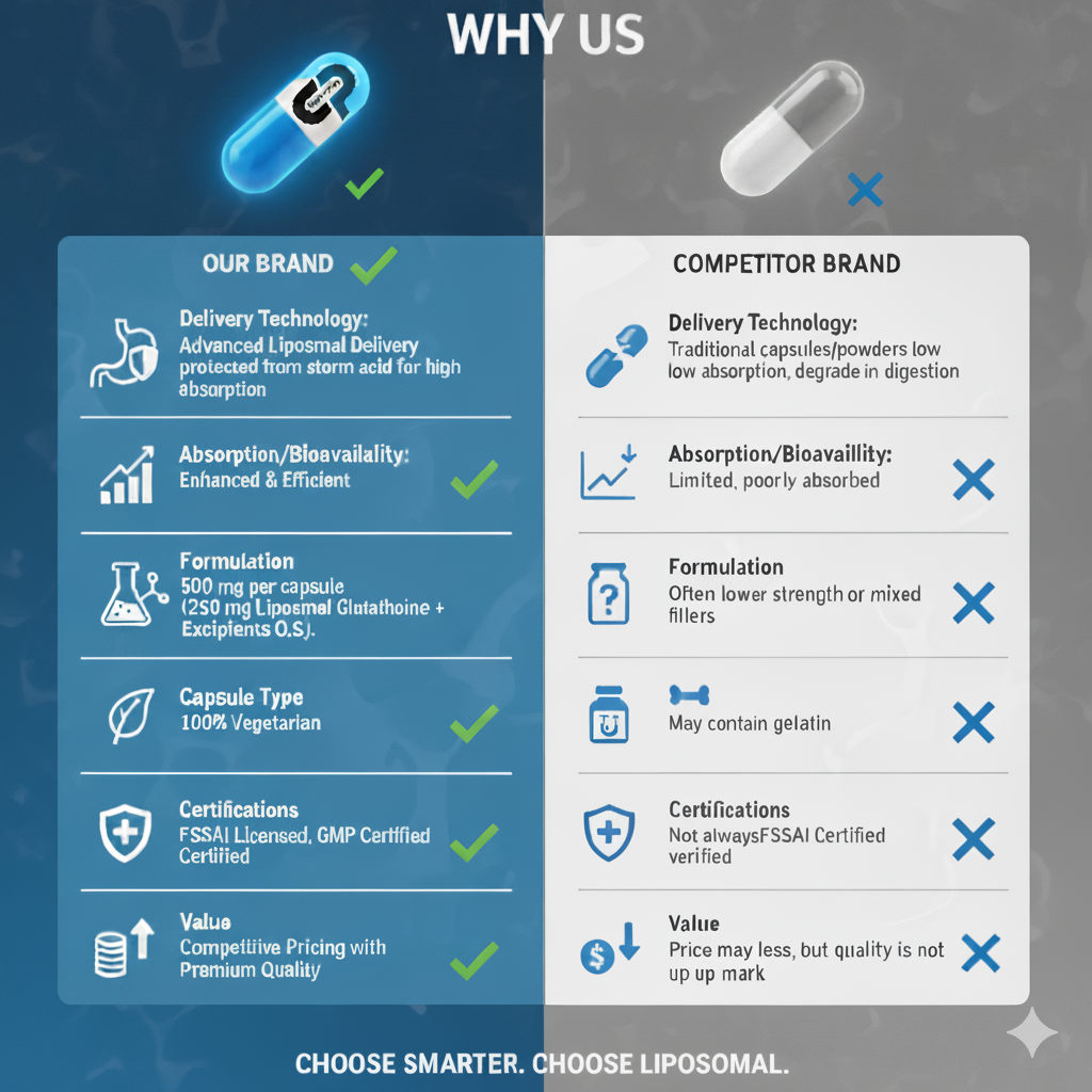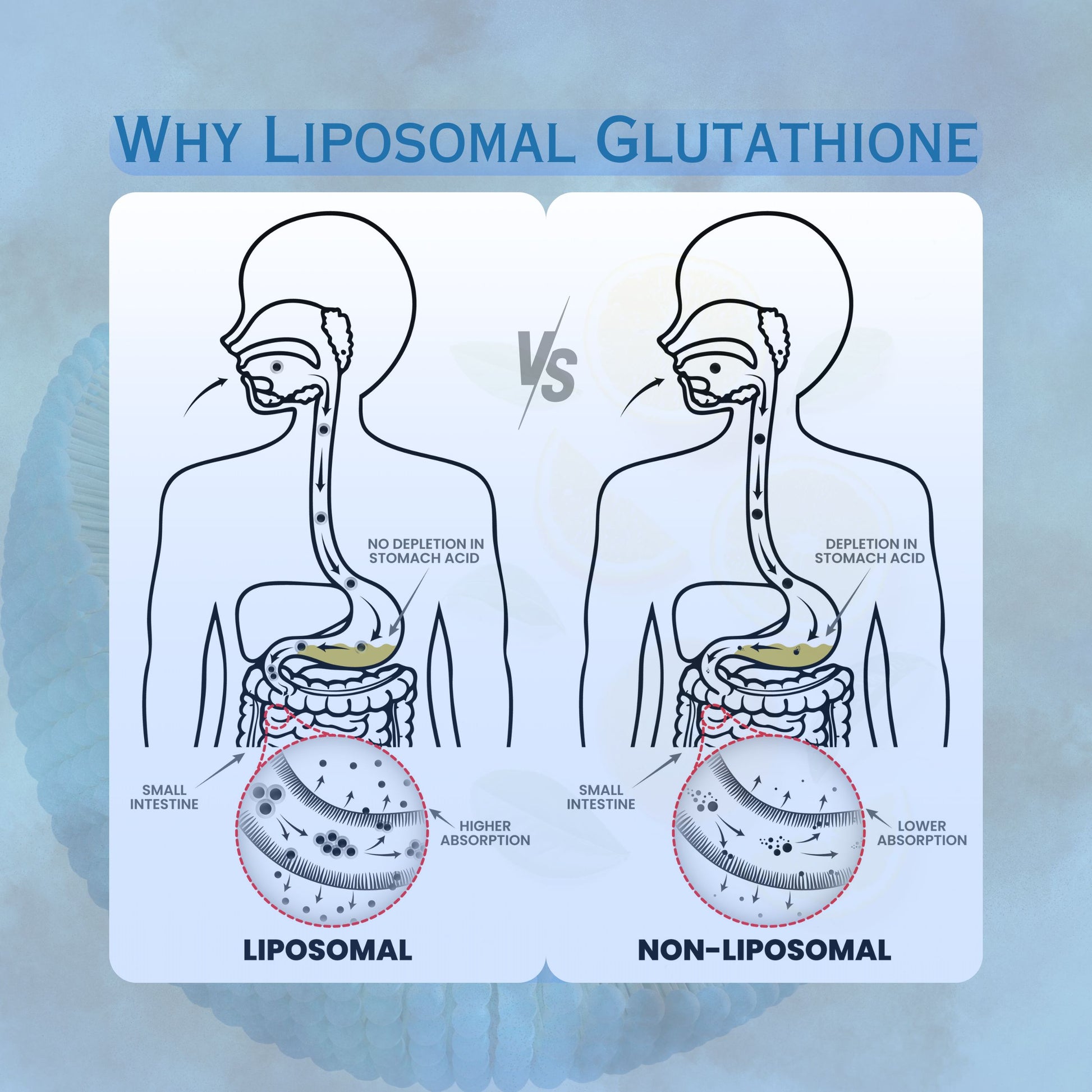 - Nano Liposomal Delivery: Nano Liposomal Phospholipid vesicles help protect glutathione through the GI tract for efficient uptake.